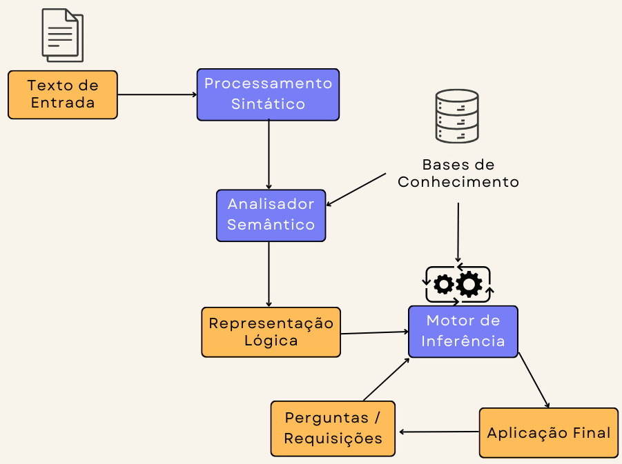 Tradicionalmente, sistemas lógicos são usados para representação formal dos textos e seus motores de inferência servem para gerar conclusões a partir dos textos. Podemos citar os sistemas lógicos mais usados em PLN: variações de Lógica Descritiva (Description Logic – DL) (Baader et al., 2003), da Lógica de Primeira Ordem (Blackburn; Bos, 2005; Eijck; Unger, 2010), vários tipos de Programação em Lógica (PROLOG) (Dahl, 1994) e Lógicas Intensionais (Shapiro, 2000).