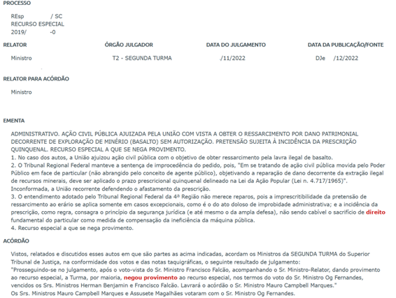 Já para o Superior Tribunal de Justiça do Brasil, ao se consultar o termo/assunto Direito Ambiental, temos os seguintes resultados: