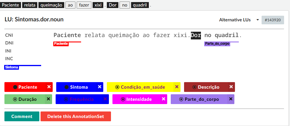 Anotação semântica baseada em frames: Processo de rotulação de unidades lexicais, frames e elementos de frame em textos e outros modos com base na teoria da Semântica de Frames.